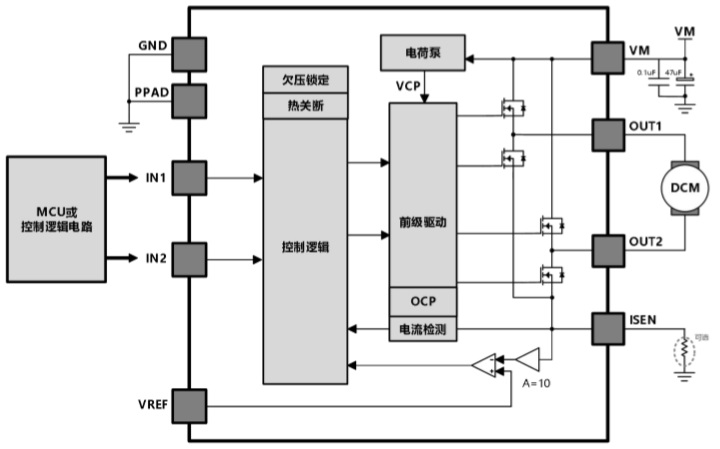 HTD8238是一款直流有刷電機(jī)驅(qū)動(dòng)器,能夠以高達(dá)7A的峰值電流雙向控制電機(jī)。利用電流衰減模式,可通過對輸入信號進(jìn)行脈寬調(diào)制(PWM)來控制電機(jī)轉(zhuǎn)速,同時(shí)具備低功耗休眠模式。