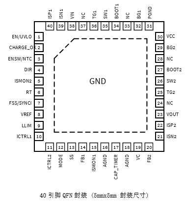 • 40引腳QFN封裝(5mm×5mm)