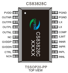 在單節(jié)鋰電池供電的情況下,CS83828C可以驅(qū)動(dòng)低至4Ω的負(fù)載,最大輸出2×9.2W@1%的恒定功率.CS83828C自帶4個(gè)自適應(yīng)升壓點(diǎn),可以根據(jù)輸入的音頻信號(hào)大小,自動(dòng)選擇其升壓點(diǎn),使得功放系統(tǒng)盡可能的提升效率,延長功放的播放時(shí)間。AB/D類可切換模式的設(shè)計(jì),最大限度的減少音頻子系統(tǒng)中功放對FM的干擾,為終端產(chǎn)品提供了更為極致的功率輸出.
