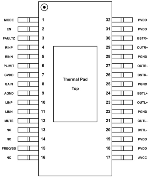- THD+N ≤ 0.02% 測試條件 1W, 1kHz,4Ω, PVDD=32V