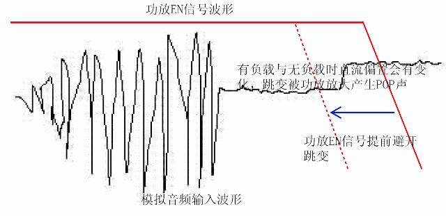以上措施均在功放周邊硬件電路做處理,在音頻輸入端測得模擬波形大致如下