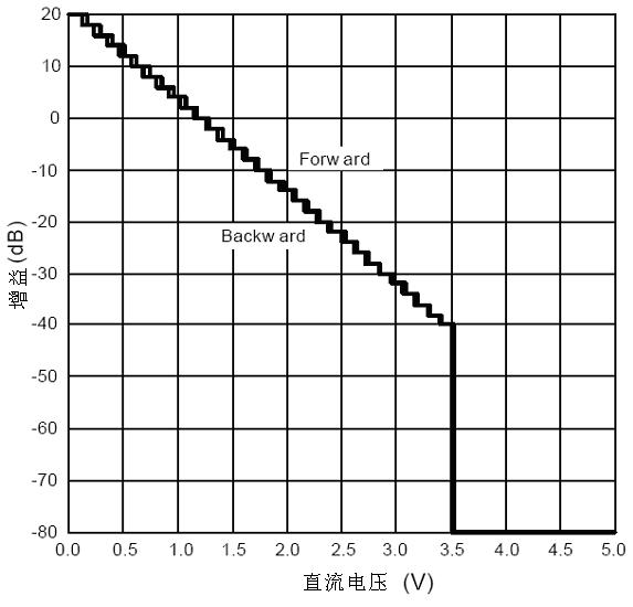 如下表所示。為了使音量控制端噪聲影響最小,影響增益電平的滯后和延遲被考慮。滯后對應(yīng)步寬的一半,如下圖所示。
