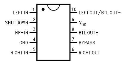 l VDD=5V,THD+N<1%,BTL輸出功率: