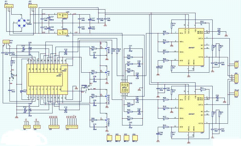 該集成塊內(nèi)部還具有完善的保護(hù)措施:過壓、欠壓、超載、超溫( 165℃時(shí)輸出自動(dòng)關(guān)閉,155℃時(shí)自動(dòng)恢復(fù)工作)及該公司專利——安全工作區(qū)SPIKE峰值保護(hù)(保證集成功放末級(jí)對(duì)管工作在特性曲線的安全工作區(qū)內(nèi)等功能)。可以說,采用LM4766設(shè)計(jì)成功的功率放大器,一般都能達(dá)到相當(dāng)?shù)陌踩阅。另外,LM4766內(nèi)部的兩個(gè)聲道都具有獨(dú)立的靜音電路,并且通過兩根引腳引出。它的作用是可以關(guān)閉LM4766的輸入,使內(nèi)部的功放沒有任何信號(hào)輸出,這兩根引腳以一定方式連接后,能消除開機(jī)過程中的沖擊。從DATASHEET上我們可以看到,在LM4766的供電電壓達(dá)到+-30V,并且有足夠的信號(hào)激勵(lì),那么,LM4766將輸出40W的功率推動(dòng)揚(yáng)聲器單元,這種功率,已經(jīng)能夠把絕大部分的多媒體揚(yáng)聲器推得服服帖帖。更何況,大家在平時(shí)欣賞音樂時(shí)候,大概也就1、2W的功率就足夠響了。根據(jù)以往的經(jīng)驗(yàn),LM4766功率盡管不算很大,然而推力卻較強(qiáng),音色厚實(shí)、豐潤雍容柔和耐聽,用它推動(dòng)中小型音箱,可以有效避免中小音箱的音色容易出現(xiàn)單薄、纖弱等不足,甚至可享受到類似電子管機(jī)的音色。