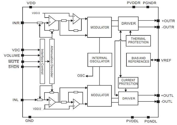 3. 由于芯片中的數(shù)字音量控制具有很大的增益,所以在增大其音量時要注意不要讓輸入信號過大而使信號產(chǎn)生削波限幅,甚至還可能使芯片損壞。