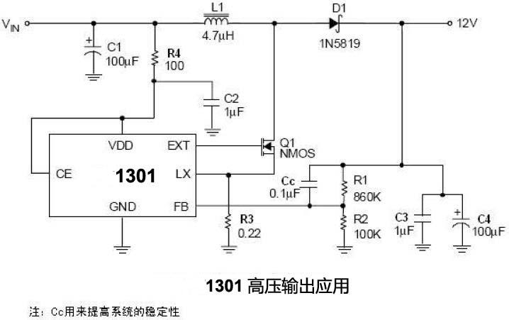 5V DC/DC升壓至12V,300mA輸出電流(PT1301/AX1301高壓大電流應(yīng)用電路)