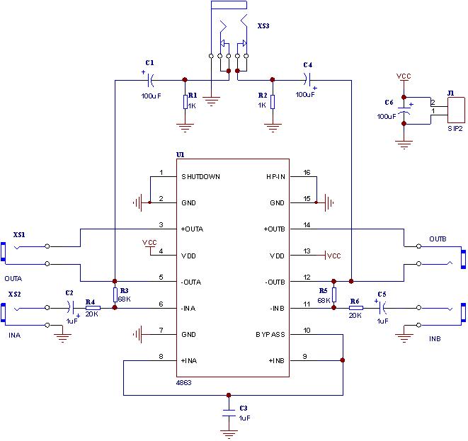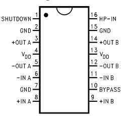 LM4863D是一個(gè)雙路音頻功率放大器.它能夠在5V電源電壓下給一個(gè)4Ω負(fù)載提供THD小于1%、最大平均值為2.2W的輸出功率。另外,在驅(qū)動(dòng)立體聲耳機(jī)時(shí)耳機(jī)輸入引腳可以使放大器工作在單邊模式。LM4863D是為提供高保真音頻輸出而專門設(shè)計(jì)的.它僅僅需要少量的外圍元件,為了簡(jiǎn)化音頻系統(tǒng)設(shè)計(jì),LM4863D集雙路橋式揚(yáng)聲器放大器和立體聲耳機(jī)放大器與一體。LM4863D還有外部控制的關(guān)閉模式,立體聲耳機(jī)放大器模式和熱保護(hù)關(guān)閉模式,還有減少開機(jī)噪聲功能。采用DIP-16封裝。