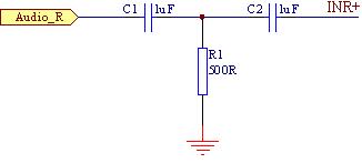 將輸入端接法改為如下圖5(列出右聲道,左聲道同樣處理),相關(guān)值需視具體情況微調(diào);