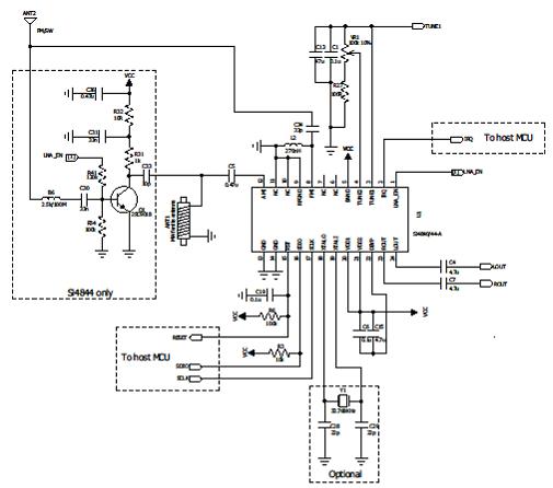 3. Si484x應(yīng)用電路:滑動開關(guān)選擇波段和MCU重新設(shè)置波段屬性