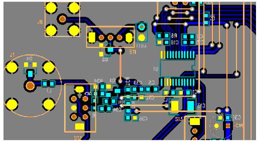 在做PCB布板設(shè)計(jì)時,應(yīng)盡量在芯片底部和周圍產(chǎn)生大的GND平面,芯片所有的GND和RFGND管腳都要連接到這個GND平面上。