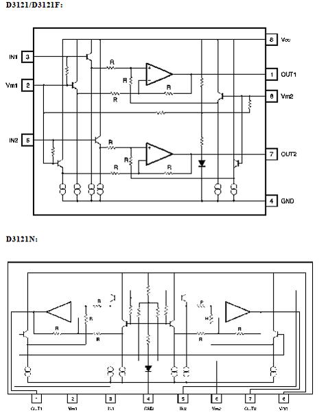 D3121,D3121F及 D3121N是一塊對(duì)地能動(dòng)沖放大器集成電路,該電路能有效消除由線路電阻所引起的問(wèn)題及噪聲。所需外圍電容小,便于設(shè)計(jì)時(shí)小型化的同時(shí)可靠性不降低。廣泛應(yīng)用于車載音響系統(tǒng)內(nèi)。 D3121系列采用DIP8、SOP8、SIP8的封裝形式。管教完全兼容BA3121。