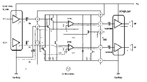 D3121利用其一個(gè)運(yùn)算放大器的共模抑制功能來(lái)消除噪聲,如不使用D3121電路,則噪聲直接進(jìn)入功率放大器;使用時(shí),運(yùn)算放大器的CMMR可消除噪聲。