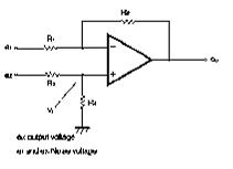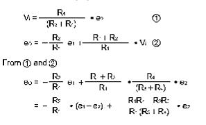 理想情況下, 如果 R1R4 = R2R3, and e1 = e2, 噪聲將會(huì)變成0。但是,由于電阻間的失配,噪聲電壓(e1 與 e2)、運(yùn)算放大器的承受范圍會(huì)有差別,因而還是會(huì)產(chǎn)生噪聲電壓。