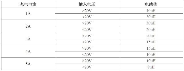 ⑤電感L 的選擇:如下表所示。