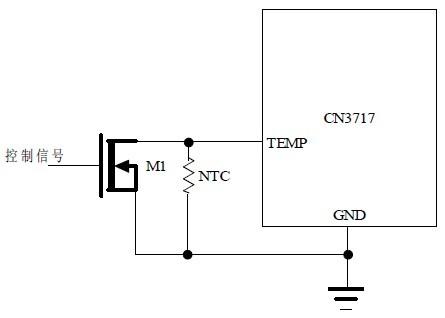 當(dāng)控制信號為高電平時(shí),M1導(dǎo)通,TEMP管腳為低電平,禁止充電;