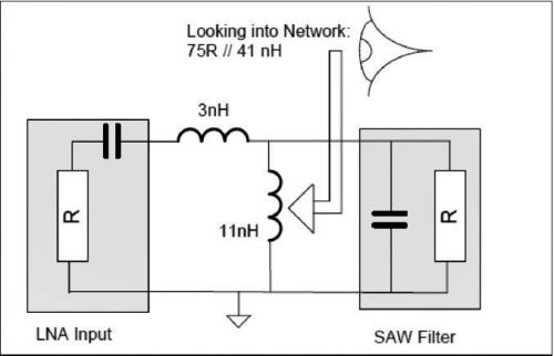 單端LNA輸入阻抗Z=42.5-J55 (串聯(lián)電路一般用阻抗表示)。