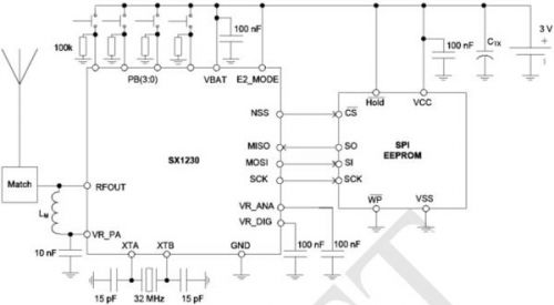 SX1230可用在RKE,遙控和安全系統(tǒng),語音和數(shù)據(jù)RF通信鏈接,過程以及建筑物/家庭控制、RFID和自動抄表等。