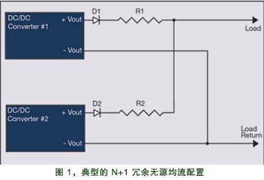 采用無源均流的其它原因還包括:提高 N+1 電源模塊配置的可靠性,保證沒有使用中間電壓總線和負載點轉(zhuǎn)換器的電路板的更好性能。如果電路板包含了配送很寬的負載,通過使轉(zhuǎn)換器盡可能接近負載將可以取得較好的調(diào)壓效果——也許使用電路板的兩面——并且由于電路板線徑將傳送更少電流,因此可以減少銅芯的數(shù)量。