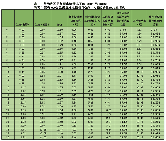 另外,表 1 顯示了由于電阻器和 ORing 二極管造成的功率損失,以及對效率的整個影響。從此表可以看出,無源均流遠非完美。由于負載和 1% 標準部件造成的電路限制,在理論上,最差情況下,兩個轉(zhuǎn)換器之間的共享的 22A 負載的負載共享為 24.4%(基于 0.02 歐姆的衰減電阻器)。但是,這一負載共享是在損失了 4.05% 的效率后取得的!