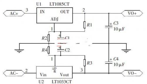 圖3正負(fù)線性穩(wěn)壓模塊電路