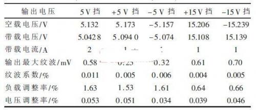 測(cè)試儀器采用固緯4位半數(shù)字萬(wàn)用表(GDM-8245)、上海愛(ài)儀交流毫伏表(AS2294D)和調(diào)壓變壓器(TDGC -0.5/0.5) .負(fù)載電阻采用水泥電阻(2.5Ω/20 W、5Ω/20 W、15Ω/20 W) .電源性能參數(shù)如表1所示?梢钥闯,負(fù)載調(diào)整率和電壓調(diào)整率反映出了電源較高的穩(wěn)定度,紋波系數(shù)指標(biāo)反映出低紋波特性。
