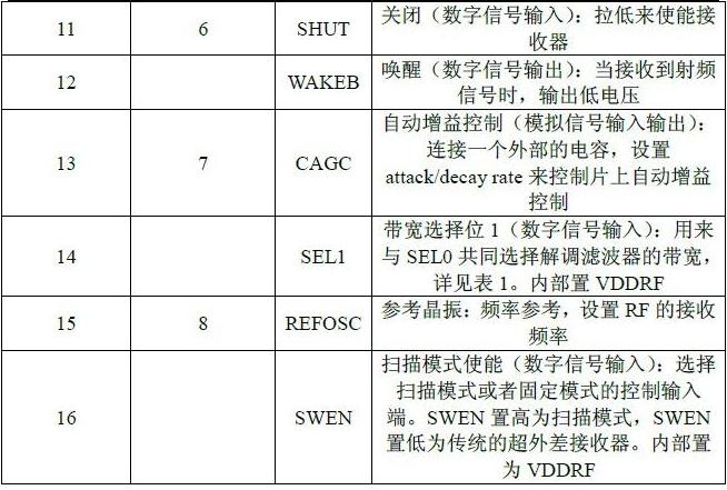 XC4366是一個 ASK/OOK(開關(guān)鍵控)的單晶片射頻接收集成電路設(shè)備。它是一個真正的“從天線接收到數(shù)據(jù)輸出”的單片電路。所有的射頻和中頻的調(diào)諧都在集成電路里完成,這樣可以無須手動調(diào)整并且降低成本。實現(xiàn)了一個高度可靠且低成本的解決方案。XC4366是一個采用 16 引腳封裝且功能齊全的芯片,XC4366A/B/C/DL 采用了 8 引腳封裝,功能稍有減少。XC4366 提供了兩種附加的功能,(1)一個關(guān)閉引腳,在任務(wù)周期操作時可以用來關(guān)閉設(shè)備;(2)一個喚醒輸出引腳,當(dāng)接收到射頻信號時,它可以提供一個輸出標(biāo)記。這些特點使得 XC4366 可以用在低功耗的應(yīng)用上,比如 RKE 和遠(yuǎn)程控制。