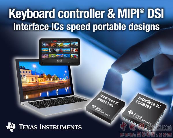 TI宣布推出兩款可幫助平板電腦設(shè)計(jì)人員簡(jiǎn)化設(shè)計(jì)的全新器件。其中 TCA8424 是業(yè)界首款采用 I2C 128 鍵鍵盤控制器的人機(jī)接口器件(HID),無需在生產(chǎn)階段對(duì)器件進(jìn)行編程,可簡(jiǎn)化設(shè)計(jì),加速產(chǎn)品上市進(jìn)程。該鍵盤控制器可為基于 Windows® 8 的系統(tǒng)提供連接鍵盤的低成本無縫方案。而 SN65DSI85 則是一款面向 FlatLink™ 接口 IC 的數(shù)字分量串行接口 (DSI),可幫助設(shè)計(jì)人員以更低成本更便捷地連接圖形處理器與 LCD 面板。SN65DSI85 可在平板電腦、上網(wǎng)本以及移動(dòng)因特網(wǎng)設(shè)備上支持高達(dá) 2560 × 1600p 的分辨率。