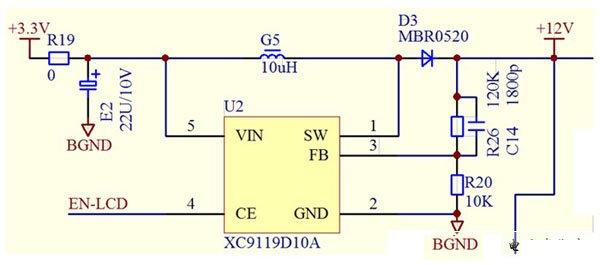 這個芯片把三極管集成到芯片內(nèi)部,因此應(yīng)用比較簡單。因為它能提供的電流很小,是給lcd供電的。+12V后面還有一個10uF/25V的電容。
