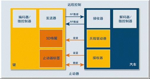 單向R F頻段無線通訊用于遙控開關(guān)車門功能。防盜鎖止系統(tǒng) (ImmobilizerSystem) 內(nèi)建有采用 AUT64 加密算法可實現(xiàn)雙向LF頻段無線通訊認證。