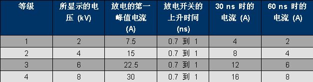 表 1、IEC 61000-4-2 波形參數。