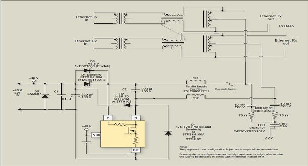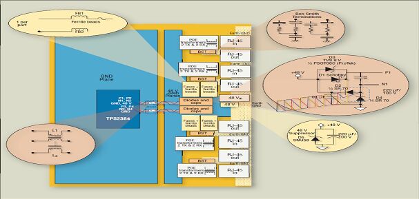 很明顯,D2、D4、D3、D1、C1、C2以及電源輸入和 RJ-45 連接器必須靠得非常近,以使瞬態(tài)電流回路所占空間以及其生成的阻抗盡可能的小。在多端口應用中,推薦對每一組的兩個或四個端口使用與 C1 一樣的去耦電容器,并使每個電容的放置都靠近其相關組。為抑制器器件提供足夠的銅箔面積以促進散熱也是非常重要的。另外一個注意事項是以太網接口電路通常要求數據線路驅動電路要有數據線路保護器。不過,本文的重點是闡述用于 PoE 電路的保護技術。