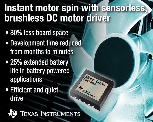 DRV10963 現(xiàn)已開(kāi)始供貨,采用支持裸露導(dǎo)熱焊盤(pán)的高效散熱 10 引腳、3 毫米 x 3 毫米 USON 封裝。