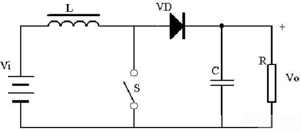 升壓變換器原理圖如圖2所示,當(dāng)開關(guān)閉合時,輸入電壓加在電感上,此時電感由電壓(Vi)勵磁,電感增加的磁通為:(Vi)*Ton。