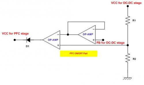 圖1:建議的實(shí)現(xiàn)PFC級(jí)間歇工作的電路