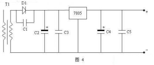 電源負(fù)載能力差是一個常見的故障,一般都是出現(xiàn)在老式或工作時間長的電源中,主要原因是各元器件老化,開關(guān)管的工作不穩(wěn)定,沒有及時進(jìn)行散熱等。應(yīng)重點(diǎn)檢查穩(wěn)壓二極管是否發(fā)熱漏電,整流二極管損壞、高壓濾波電容損壞等。例:我廠近紅處激光光譜儀(VECTOR 22),開機(jī)后無法完成自檢并報(bào)警且主板指示燈不斷閃爍。經(jīng)檢查,供光譜儀主板的直流5V電源僅剩2.3伏左右,脫開5V直流電源的負(fù)載,通電再次測量5V直流電源,這時則有5V,初步判斷此5V直流電源帶載能力差,拆開電源外殼進(jìn)行檢修,由于沒有帶負(fù)載時,通電有直流5V輸出,故重點(diǎn)檢查次級線圈側(cè)的輸出整流電路,給5伏電源接上假負(fù)載通電進(jìn)行測量發(fā)現(xiàn)三通穩(wěn)壓7805的1、2腳之間電壓為5.2伏,2、3腳之間卻剩2.3伏,如圖4,故判斷三通穩(wěn)壓管7805性能變壞,更換三通穩(wěn)壓管7805故障解決。