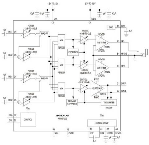 MAX97003音頻子系統(tǒng)集成了單聲道揚(yáng)聲器放大器和立體聲耳機(jī)放大器。耳機(jī)和揚(yáng)聲器放大器具有獨(dú)立的音量和開/關(guān)控制。其四個(gè)輸入可配置為兩個(gè)差分或四個(gè)單端輸入。