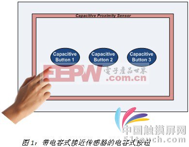 與以前討論的所有其他方法都不同,這種方法不需要任何物理接觸就能喚醒系統(tǒng),而以前的方法都需要實際觸摸到傳感器才行。電容式接近傳感器被集成到用戶界面面板,這樣當用戶手部接近用戶界面面板時就可以喚醒系統(tǒng)。下圖1對這種方式進行了簡單說明!