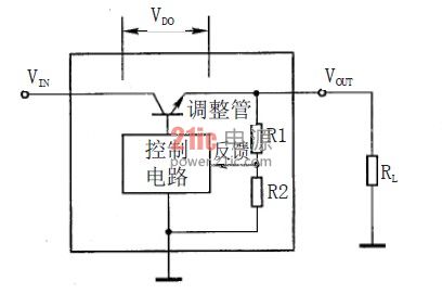 線性穩(wěn)壓器是通過輸出電壓反饋、經(jīng)誤差放大器等組成的控制電路來控制調(diào)整管的管壓降VDO (即壓差)來達(dá)到穩(wěn)壓的目的,如圖l 所示。其特點是VIN 必須大于VOUT 且調(diào)整管工作在線性區(qū)(線性穩(wěn)壓器從此得名)。無論輸入電壓的變動或負(fù)載電流的變化引起輸出電壓變動時,通過反饋及控制電路,改變VDO 的大小,使輸出電壓VOUT 基本不變。
