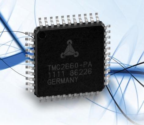 該芯片采用多芯片模組封裝技術(shù),將驅(qū)動(dòng)器和放大器封裝在一個(gè)芯片內(nèi),實(shí)現(xiàn)了最低功耗,目前可用于4安培的步進(jìn)電機(jī)驅(qū)動(dòng)器。TMC2660的Rds為65毫歐,于4安培電流的情況下工作只耗能2.8瓦,與之前最具競(jìng)爭(zhēng)力的解決方案相比減少了85%。新芯片的低能耗消除了對(duì)散熱器的需求,實(shí)現(xiàn)了高集成的面板設(shè)計(jì)、減少了元件的數(shù)量并降低成本。