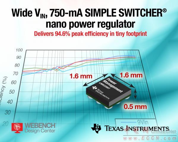 TI宣布推出業(yè)界最小的 12V、750mA DC/DC 電源穩(wěn)壓器。該 SIMPLE SWITCHER® 穩(wěn)壓器支持高性能并采用極小型毫微級封裝,可推動空間有限的電源密集型應(yīng)用發(fā)展,充滿滿足消費(fèi)類、工業(yè)以及汽車等各種市場需求。這款毫微電源穩(wěn)壓器在 2.56 平方毫米封裝中高度整合大量特性,不僅可幫助工程師更便捷地為其系統(tǒng)設(shè)計電源,而且與 TI 獲獎型 WEBENCH® 在線設(shè)計工具相結(jié)合,還可簡化并加速設(shè)計進(jìn)程。欲了解更多詳情、獲得樣片與評估板,敬請訪問:www.ti.com.cn/lmr22007-pr-cn。