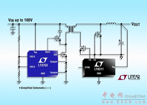 該器件無需使用光耦合器就可實(shí)現(xiàn) ±5% 的輸出電壓調(diào)節(jié)。當(dāng)使用光耦合器時(shí),可以實(shí)現(xiàn) ±1.5% 的調(diào)節(jié)度。LT3753 通過脈沖變壓器向副邊 MOSFET 驅(qū)動器發(fā)送控制信號以實(shí)現(xiàn)同步整流定時(shí)。該器件還可用于自驅(qū)動式應(yīng)用 (在很窄的輸入范圍內(nèi)工作時(shí)),這類應(yīng)用的副邊 MOSFET 由電源變壓器脈沖控制。此外,LT3753 還可用在異步設(shè)計(jì)中,一般用于較高輸出電壓的應(yīng)用。