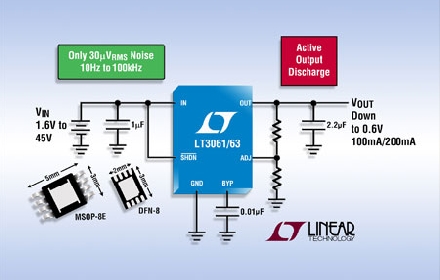 Linear推出具有源輸出放電的高壓、低噪聲、低壓差電壓線性穩(wěn)壓器 LT3061。該器件在滿負載時,以 250mV 壓差電壓提供高達 100mA 的連續(xù)輸出電流。LT3061 包含一個內部 NMOS 下拉電路,如果 SHDN 引腳被驅動至低電平或輸入電壓被關斷,那么該下拉電路就給輸出電壓放電。這種快速輸出放電有助在需要電源調理的應用中于啟動和停機時保護負載,例如在高端成像傳感器的應用。