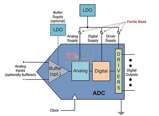 采用單個LDO驅動多個ADC電源輸入