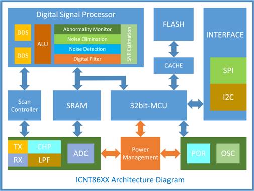 集創(chuàng)ICNT86系列觸控芯片架構(gòu)框圖。