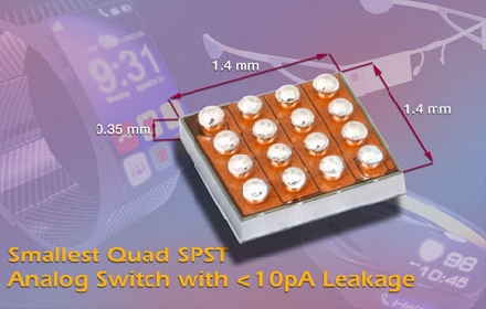 今天推的開關(guān)尺寸為1.4mm x 1.4mm,節(jié)距0.35mm,采用頂側(cè)疊層以提高耐用性,比最接近的競爭器件小50%,比采用標(biāo)準(zhǔn)QFN16封裝的器件小95%。DG2501、DG2502和DG2503尺寸較小,不到0.01μW的典型功耗可延長電池壽命,非常適合模擬前端的信號開關(guān)、可編程增益控制、采樣保持電路,以及智能手表、醫(yī)藥貼、健身監(jiān)測、傳感器和其他構(gòu)成物聯(lián)網(wǎng)(IoT)的類似產(chǎn)品里的多路模擬輸入復(fù)用。