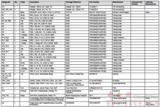 DRV2700EVM-HV500反激高壓評估模塊材料清單: