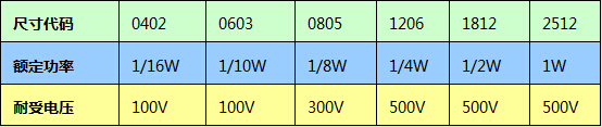 表一 常用SMT厚膜電阻