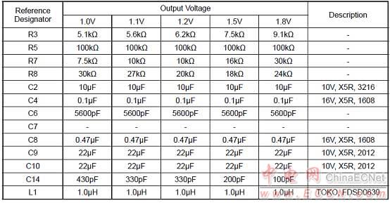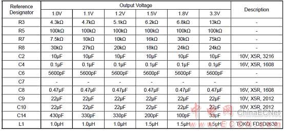 推薦元件數(shù)值(VIN = 3.3V):