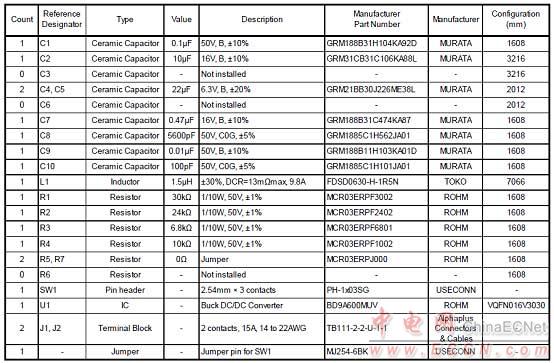 BD9A600MUV-EVK-001評估板材料清單: