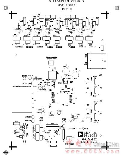圖10.評估板AD9154-EBZ PCB元件布局圖(頂層)